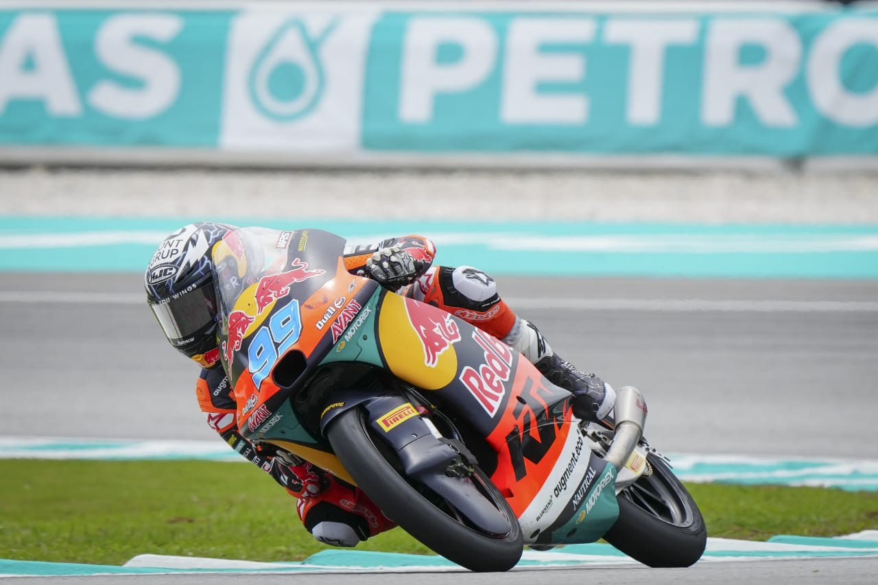 World Champion Jose Antonio Rueda (Red Bull KTM Ajo) heads into the weekend as the rider to beat in Moto3 after the 99 topped a delayed Practice on Friday afternoon. Rueda’s 2:11.152 was top but only 0.035s quicker than his rookie teammate and second fastest rider Alvaro Carpe, with Red Bull KTM Ajo enjoying a perfect start to the Malaysian GP.